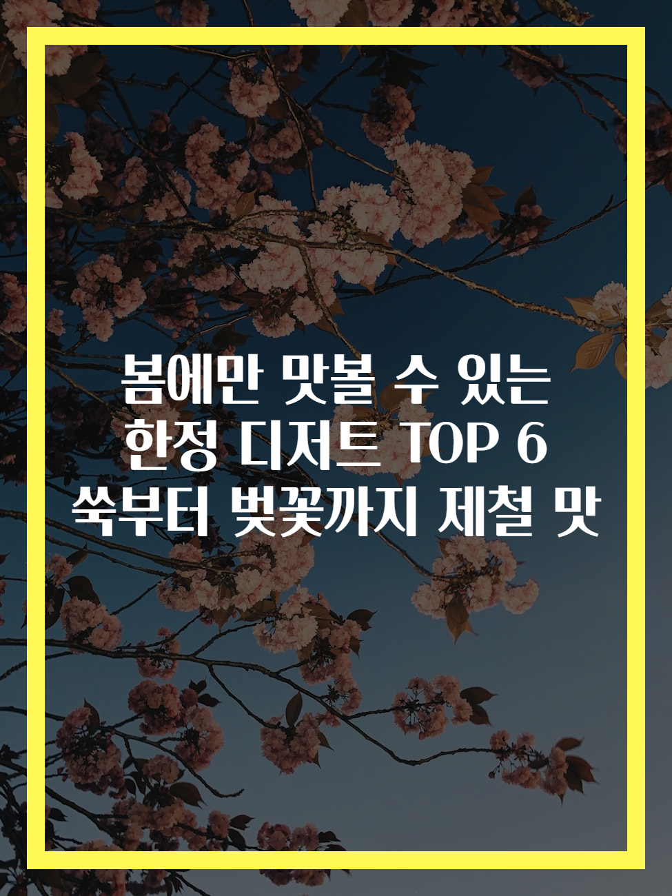 메타 설명: "봄에 한정된 디저트 TOP 6을 통해 쑥, 벚꽃 등 제철 재료의 풍미를 느껴보세요!"