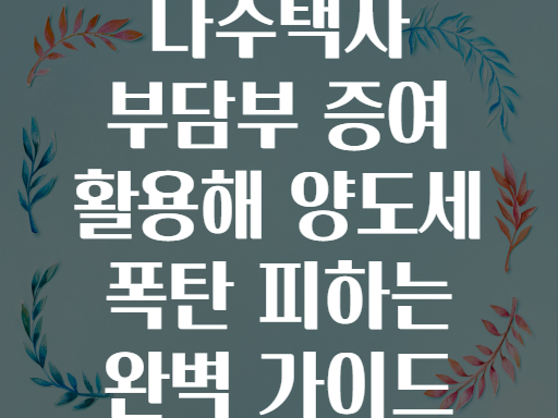 다주택자 부담부 증여 활용해 양도세 폭탄 피하는 완벽 가이드 🏠💰✨