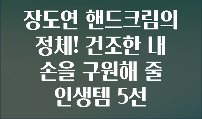 안녕하세요! 여러분, 혹시 겨울철이나 사무실 에어컨 바람 때문에 손이 갈라지고 건조하진 않으셨나요? 🤲💦 장도연씨가 극찬한 그 핸드크림, 궁금하지 않으신가요? 오늘은 건조한 내 손을 부드럽고 촉촉하게 지켜줄 핸드크림 인생템 5선을 소개해드리면서, 장도연 핸드크림의 정체도 함께 파헤쳐 보려고 해요! 🎉