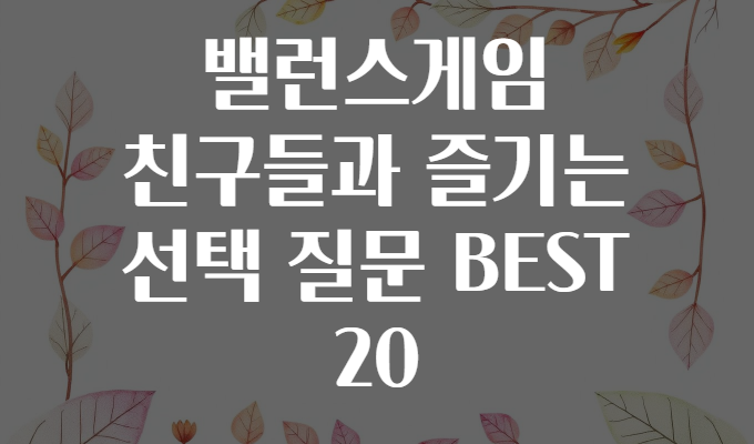 오늘은 친구들과의 대화 소재로 딱 좋은 밸런스게임 질문 BEST 20을 소개하며, 재미있게 즐기는 방법과 게임을 할 때 주의할 점까지 함께 알아볼게요! 🎉