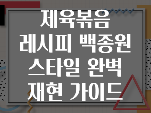 🤔 백종원 스타일 제육볶음, 제대로 만들고 싶으세요?